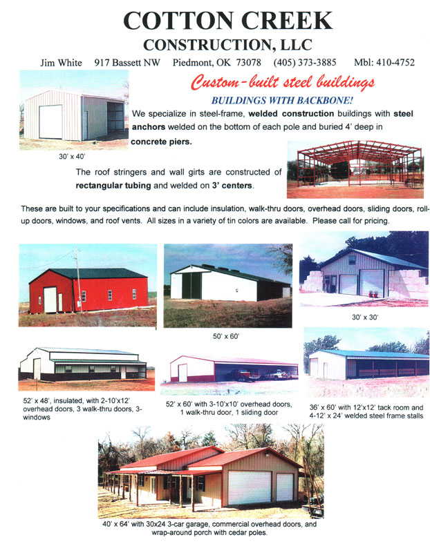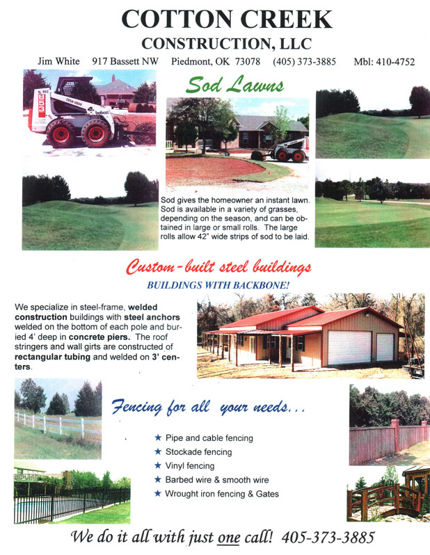 If you have any questions, do not hesitate to call either number listed above, or send an e-mail to cottoncreekconstruction@yahoo.com. Cotton Creek Construction thanks you for visiting our website, and please remember that "We do it all with just one call!"